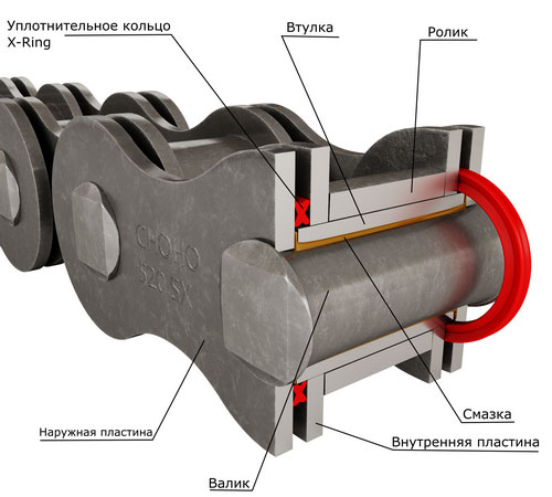 Сальниковая цепь с уплотнительным кольцом X-Ring со смазкой