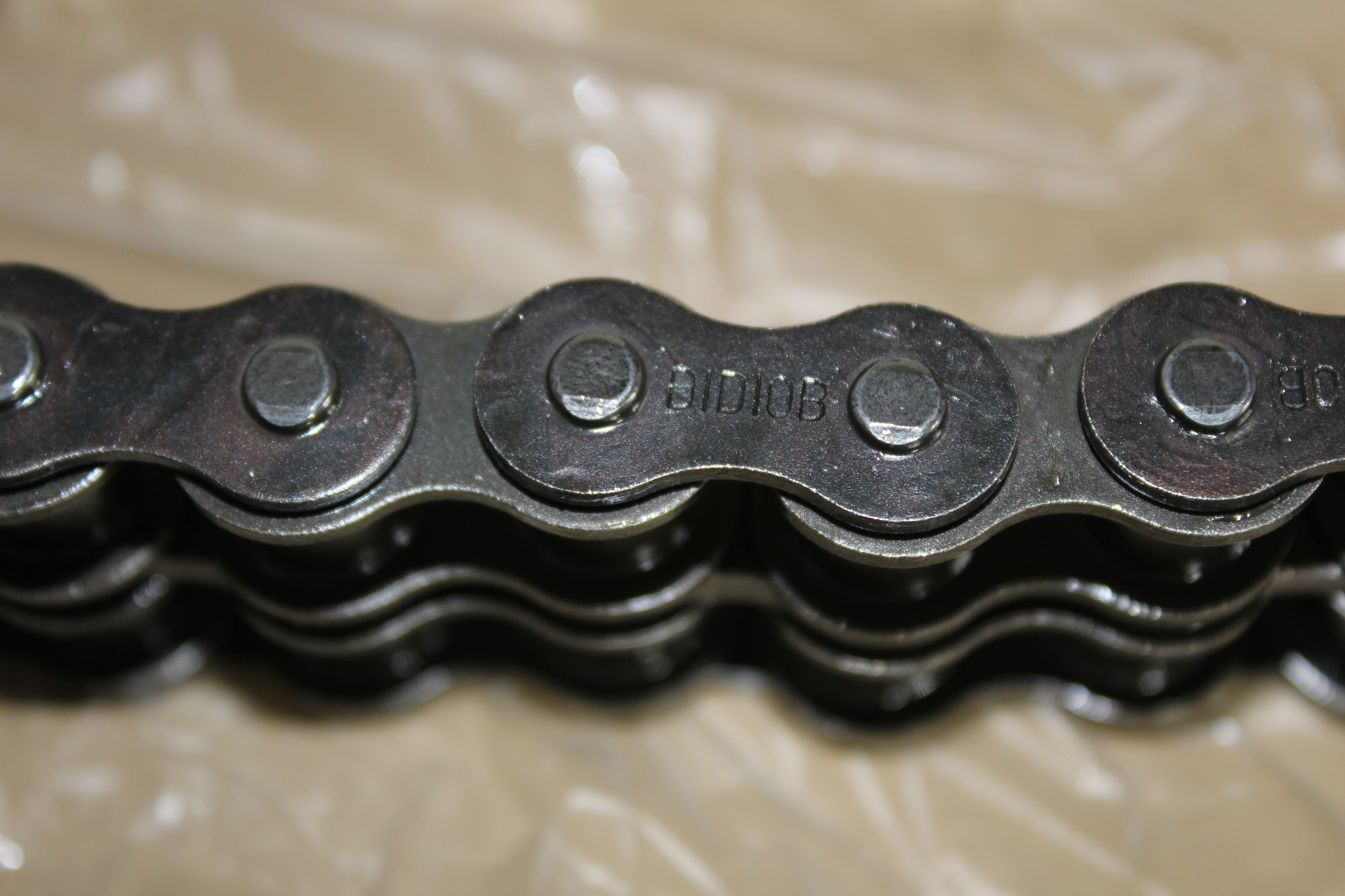 Промышленная приводная роликовая двухрядная цепь 10В-2 ISO-606 (DIN 8187) серии B изготавливается из прочной качественной стали в соответствии со стандартом ISO. Двухрядная цепь применяется для передачи крутящего момента между валами в приводе различных механизмов, специализированной технике и промышленном оборудовании, например как мотоблоки, минитракторы, редукторы, сельскохозяйственная техника, конвейеры, подъёмное навесное оборудование.
