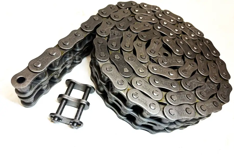 Промышленная приводная роликовая двухрядная цепь 20B-2 ISO-606 (DIN 8187) серии B изготавливается из прочной качественной стали в соответствии со стандартом ISO. Двухрядная цепь применяется для передачи крутящего момента между валами в приводе различных механизмов, специализированной технике и промышленном оборудовании, например как мотоблоки, минитракторы, редукторы, сельскохозяйственная техника, конвейеры, подъёмное навесное оборудование.