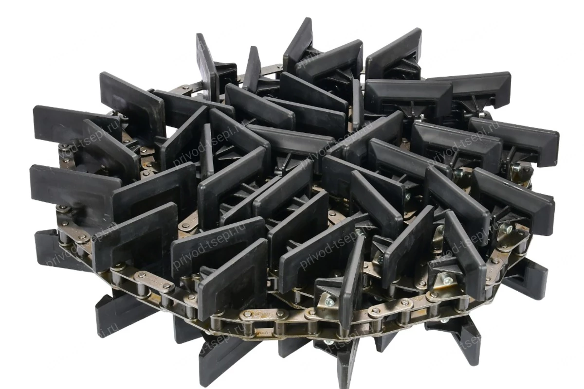 Транспортёр зернового элеватора 0006012370 для комбайнов Claas (Lexion 500 European, Lexion 700 European Series) шаг цепи — 38.400 мм, количество спецэлементов — 40 шт, вес — 23 кг – это скребковый конвейер, который должен оперативно, без повреждений и потерь переместить очищенное от стеблей и мусора зерно в бункер. В корпусе прямоугольного сечения движется роликовая длиннозвенная цепь со специальными лопастями или скребками. Зерновая масса выталкивается шнеком на эти скребки и поднимается на них в бункер. Транспортеры зернового элеватора, поставляемые нашей компанией, изготовлены на базе цепей CHOHO, производство и сборка которых осуществляется из оптимально подобранных высокопрочных сталей, способных выдерживать значительные механические нагрузки, устойчивых к разрывам и растяжению.