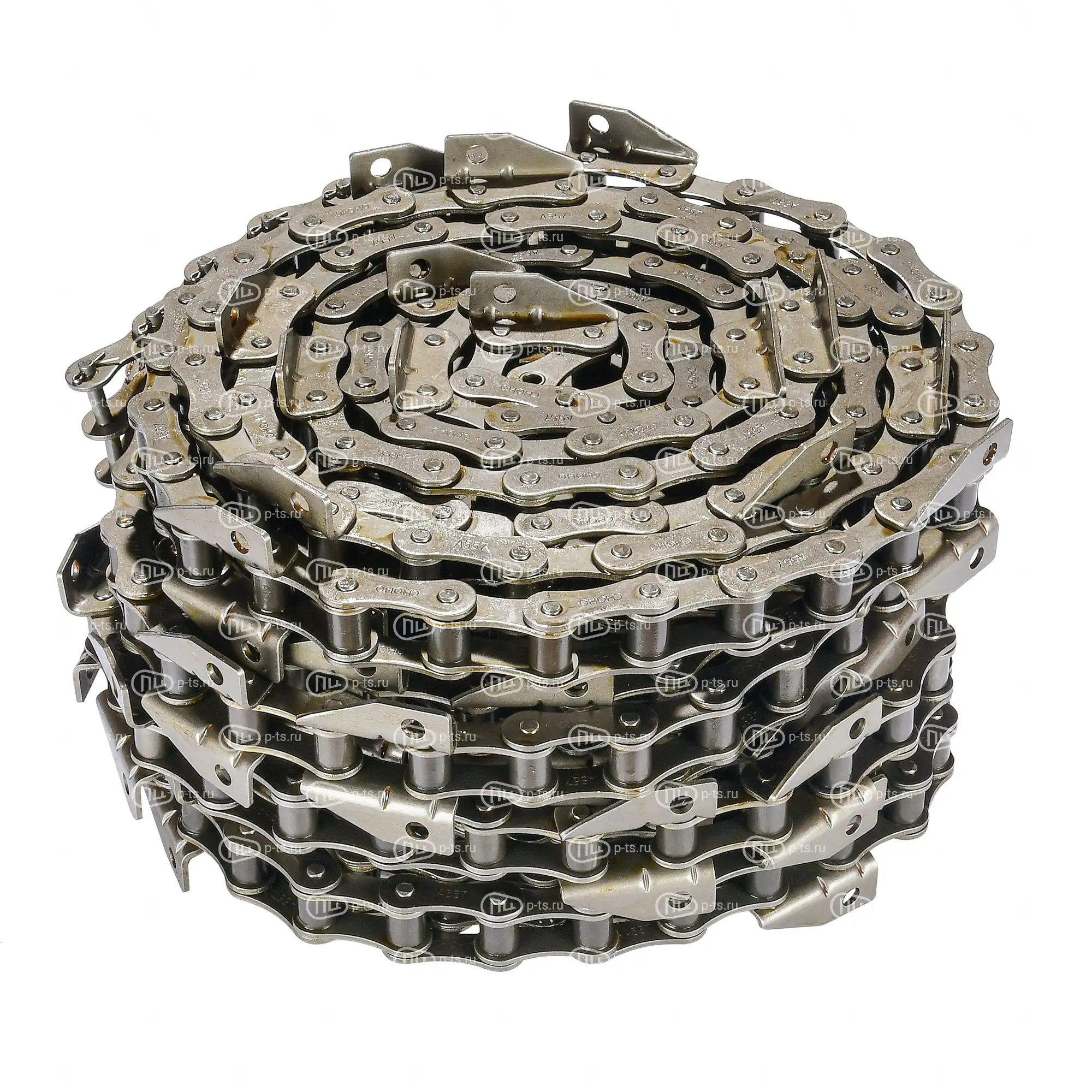 Транспортёр зернового элеватора 0007359160 для комбайнов Claas (Lexion 400 European, Lexion 400, Lexion 500 European Series) шаг цепи — 38.400 мм, количество спецэлементов — 41 шт, вес — 36.7 кг – это скребковый конвейер, который должен оперативно, без повреждений и потерь переместить очищенное от стеблей и мусора зерно в бункер. В корпусе прямоугольного сечения движется роликовая длиннозвенная цепь со специальными лопастями или скребками. Зерновая масса выталкивается шнеком на эти скребки и поднимается на них в бункер. Транспортеры зернового элеватора, поставляемые нашей компанией, изготовлены на базе цепей CHOHO, производство и сборка которых осуществляется из оптимально подобранных высокопрочных сталей, способных выдерживать значительные механические нагрузки, устойчивых к разрывам и растяжению.