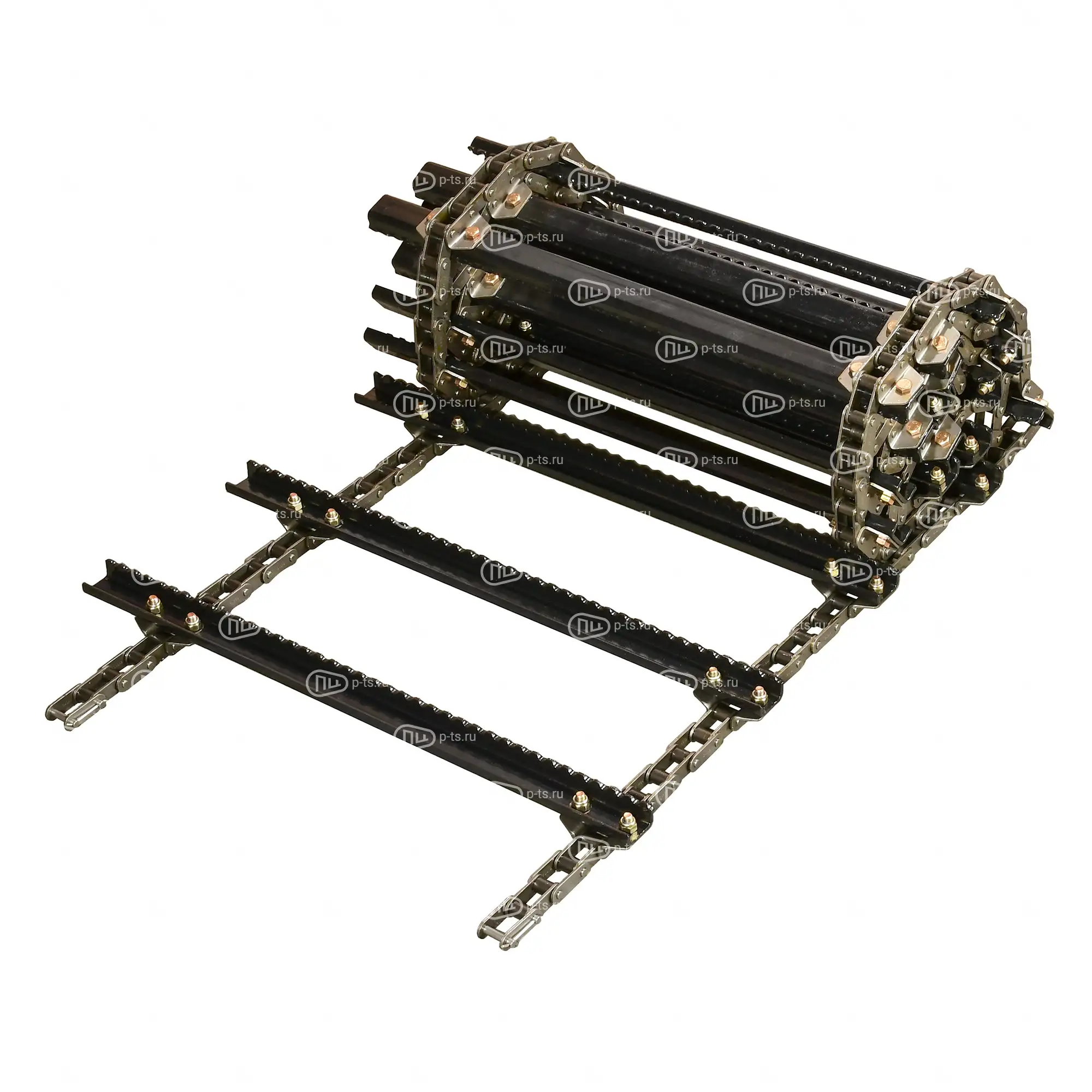 Усиленные планки транспортера обеспечивают сохранение геометрии при попадании в наклонную камеру инородных тел, а антикоррозионное покрытие позволяет избежать преждевременной порчи при хранении. Соединение планок с цепями производится высокопрочными метизами. Все транспортеры наклонной камеры собраны исключительно в заводских условиях на специальных дорогостоящих стендах, обеспечивающих строгую параллельность друг другу каждой цепи, надежную фиксацию планок, отсутствие их перекоса, что очень часто можно наблюдать при ручной непрофессиональной сборке.