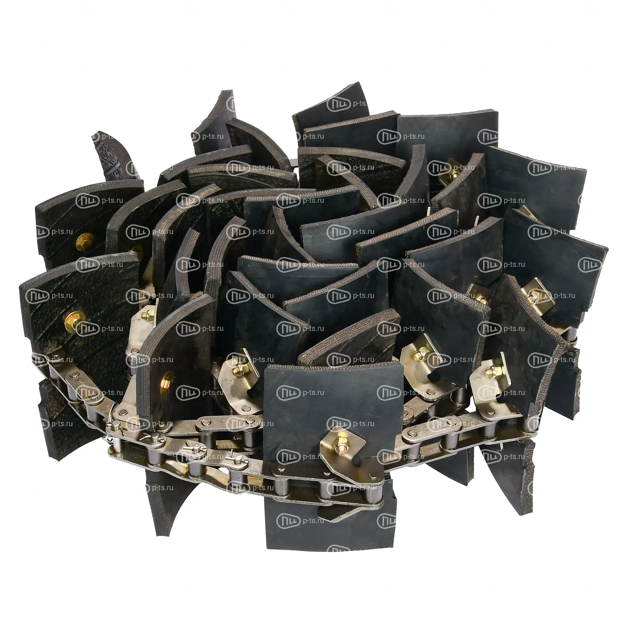 В зависимости от производителя комбайна, его модели и года выпуска, цепи комплектуются скребками из износостойкой резины, армированной нитью, толщиной не менее 12 мм или из двухсоставного обрезиненного полимерного скребка, отлитого в специально изготовленной пресс-форме. При использовании резиновых скребков, каждый из них имеет подкладные пластины, материал которых, толщина и габаритные размеры строго соответствуют оригиналу. Ряд зерновых элеваторов для высокопроизводительных комбайнов имеют подкладную пластину Г-образной формы с дополнительным ребром жесткости, для предотвращения прогиба скребка и увеличения ресурса работы. Оцинкованные болты и самоконтрящиеся гайки по 8 классу прочности надежно фиксируют скребки любого типа, затяжка которых произведена на определенный крутящий момент, опять же в соответствии с рекомендациями и техническими требованиями производителя комбайна.