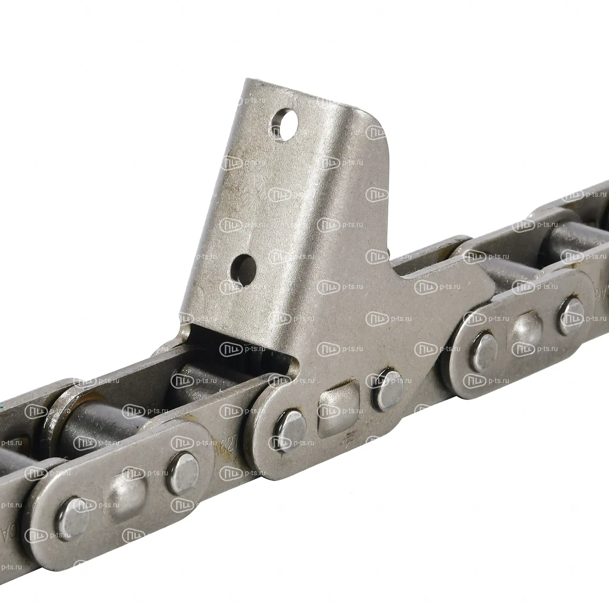 Роликовая цепь элеватора для подачи обмолоченного зерна в разгрузочный бункер для хранения с последующей отправкой в транспортных средствах. Используется для замены изношенных или повреждённых деталей во время ремонтных работ. Цепь элеватора представляет собой отрезок длиннозвенной роликовой конвейерной цепи определённой длины. Часть её внешних звеньев в определённой последовательности снабжена специальными ножками для крепления рабочих элементов элеватора (скребков, колодок). Характеризуется общим количеством звеньев, шагом и порядком чередования звеньев с креплением. Цепь для сбора кукурузных початков CA2801/TM90E/J5A используется в кукурузных жатках Geringhoff и Claas 4R70-SL, 4R75-S, 4R75-SL, 4R80-S, 4R80-SL, 5R70-SL, 5R75-S, 5R75-SL, 5R80-S, 5R90, 6R70, 6R75, 6R80, 6R80-SL, 6R90, 8R75, 8R80, CONSPEED 12-75 C, CONSPEED 6, CONSPEED 6 STARR, CONSPEED 6-70FC, CONSPEED 6-70С, CONSPEED 6-75C, CONSPEED 8, CONSPEED 8-70 FC LEX, CONSPEED 8-75 FC LEX, MP 5, MP 5C, MP 6F, MP 6FC, MP 8F, MP 8FC, MULTIMASTER, Multimaster 6R70, Multimaster 6R75, Multimaster 6R80.