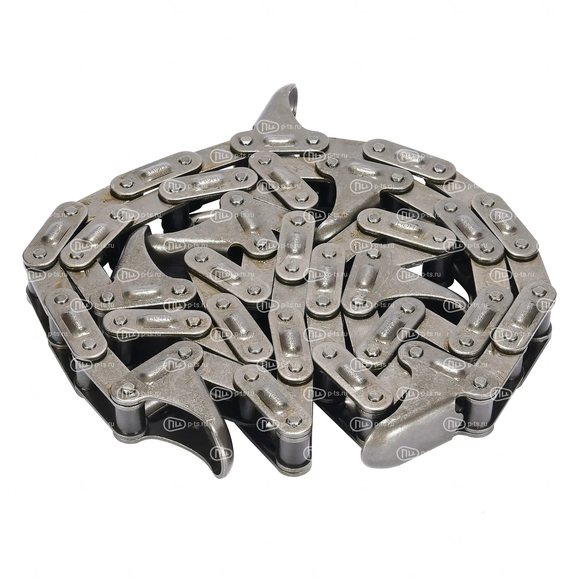 Элементы цепи изготовлены из специально подобранных легированных сталей: хромированный валик и втулка позволяют увеличить ресурс работы, так как в условиях отсутствия постоянной смазки истирание этих элементов и, как следствие, удлинение цепи происходит значительно медленнее. Конструкционная марганцовистая сталь, из которой изготовлены пластины цепи и лопатки (мысы), увеличивает их износостойкость при контакте со стеблями. Высокая точность комплектующих (9-11 квалитет точности) и заводская сборка цепи на современном дорогостоящем оборудовании обеспечивают надёжную и длительную работу в неблагоприятных условиях эксплуатации (пыль, грязь, песок, влага, отсутствие системы смазки)