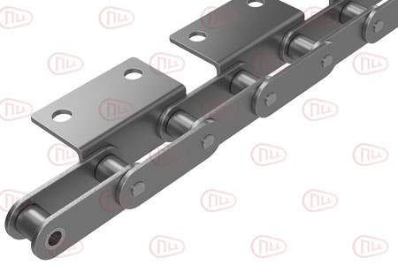Промышленная двухшаговая конвейерная роликовая цепь C2060H-WA2 с прикреплениями (аттачментами) изготовлена в соответствии со стандартом ANSI B29.1 и имеет односторонние горизонтальные широкие крепления с двумя отверстиями на наружных звеньях. Отличаются увеличенной шириной платформы крепления, распределяющей нагрузку габаритных грузов. Используется в логистике (перемещение паллетов, крупных коробок), а так же в автомобилестроении. Ширина предотвращает деформацию платформ, но требует монтажа через звено из-за риска столкновений.