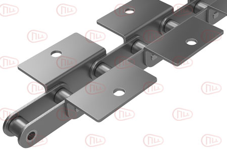 Промышленная двухшаговая конвейерная роликовая цепь C12AH-WK1 с прикреплениями (аттачментами) изготовлена в соответствии со стандартом ISO 606 и имеет двухсторонние горизонтальные широкие крепления с одним отверстием на наружных звеньях. Сочетают в себе симметрию K-типа с увеличенной площадью платформы, исключая перекосы при нагрузке большим весом. Используются в тяжелой промышленности (металлопрокат, трубы) и на складах для негабаритных грузов. Подходят для длинных платформ, где односторонние крепления типа WA могут вызвать изгиб.