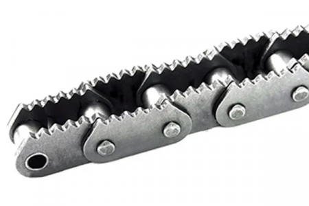 Роликовая цепь с зубчатыми пластинами 20B-1-9015 производится на базе обычной приводной цепи 20B-1 с ровным профилем пластин, но её основным отличием является наличие специальных зубчиков на пластинах. Такие зазубрины находятся на каждом звене, что улучшает контакт цепи с транспортируемым материалом и при этом не повреждает его.
